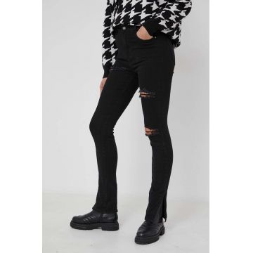 Blugi dama Aria, cu talie inalta si taieturi la genunchi