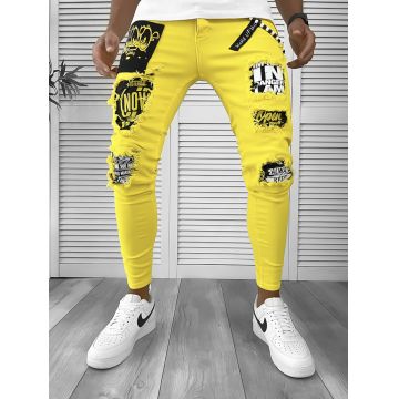 Blugi barbati conici negri cu imprimeu 1251 G4-5
