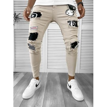 Blugi barbati conici negri cu stikere 1452 G4-3*
