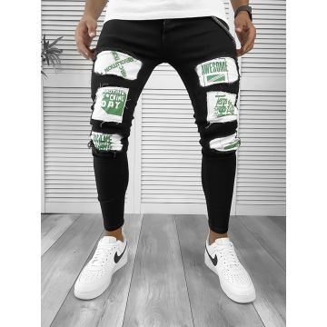 Blugi barbati conici negri cu imprimeu 1251 G4-5