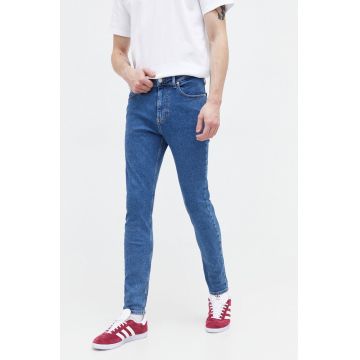 Caracteristici Culoare: albastru deschis Material: denim Imprimeu: uni Croiala: conica Talie: medie Lungime: lungi Buzunare: 5 Detalii: bucle pentru curea - detalii cu aspect deteriorat Compozitie Exterior: 88% bumbac - 11% poliester - 1% elastan Info model Modelul poarta un produs de marimea 32. Marimi model: 189 cm inaltime - 99 cm bust - 76 cm talie - 103 cm sold