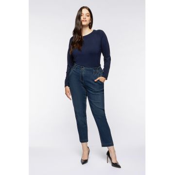 Blugi mom fit Riko, cu talie inalta, croi drept si fara elastan, Albastru denim