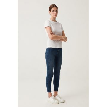 Caracteristici Culoare: albastru inchis Imprimeu: uni Croiala: super skinny Material: denim Stil: casual Talie: inalta Lungime: crop Buzunare: 5 Sistem inchidere: fermoar Detalii: bucle pentru curea Compozitie Exterior: 89% bumbac - 8% elastomultiester - 3% elastan