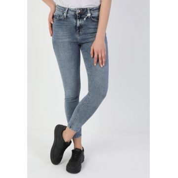 Caracteristici Culoare: bleumarin Imprimeu: uni Croiala: regular fit Material: denim Talie: inalta Lungime: lungi Compozitie Exterior: 99% bumbac - 1% elastan