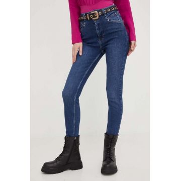 Blugi dama skinny Caty, cu talie inalta si striatii, Gri