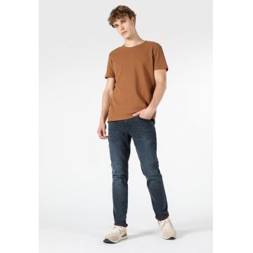 Caracteristici Culoare: albastru deschis melange Material: denim Imprimeu: uni Croiala: dreapta Talie: medie Lungime: lungi Buzunare: 5 Detalii: bucle pentru curea Compozitie Exterior: 79% bumbac - 20% bumbac reciclat - 1% elastan
