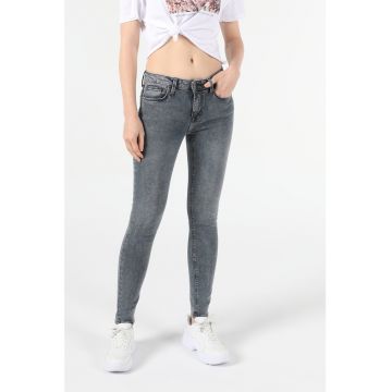 Caracteristici Culoare: negru Imprimeu: uni Croiala: slim fit Material: denim Talie: medie Lungime: crop Buzunare: 5 Sistem inchidere: fermoar Compozitie Exterior: 98% bumbac - 2% elastan