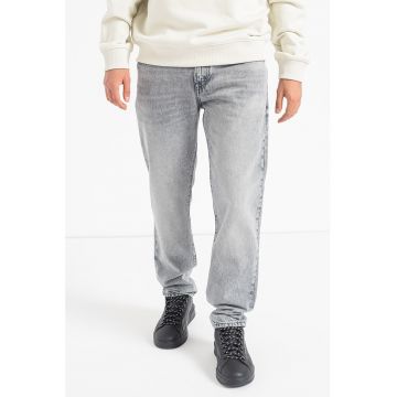 Caracteristici Culoare: bleumarin Material: denim Imprimeu: uni Croiala: slim fit Talie: medie Lungime: lungi Buzunare: 5 Detalii: bucle pentru curea Sistem inchidere: fermoar Compozitie Exterior: 99% bumbac - 1% elastan Info model Modelul poarta un produs de marimea W32-L32. Marimi model: 188 cm inaltime - 101 cm bust - 83 cm talie - 102 cm sold